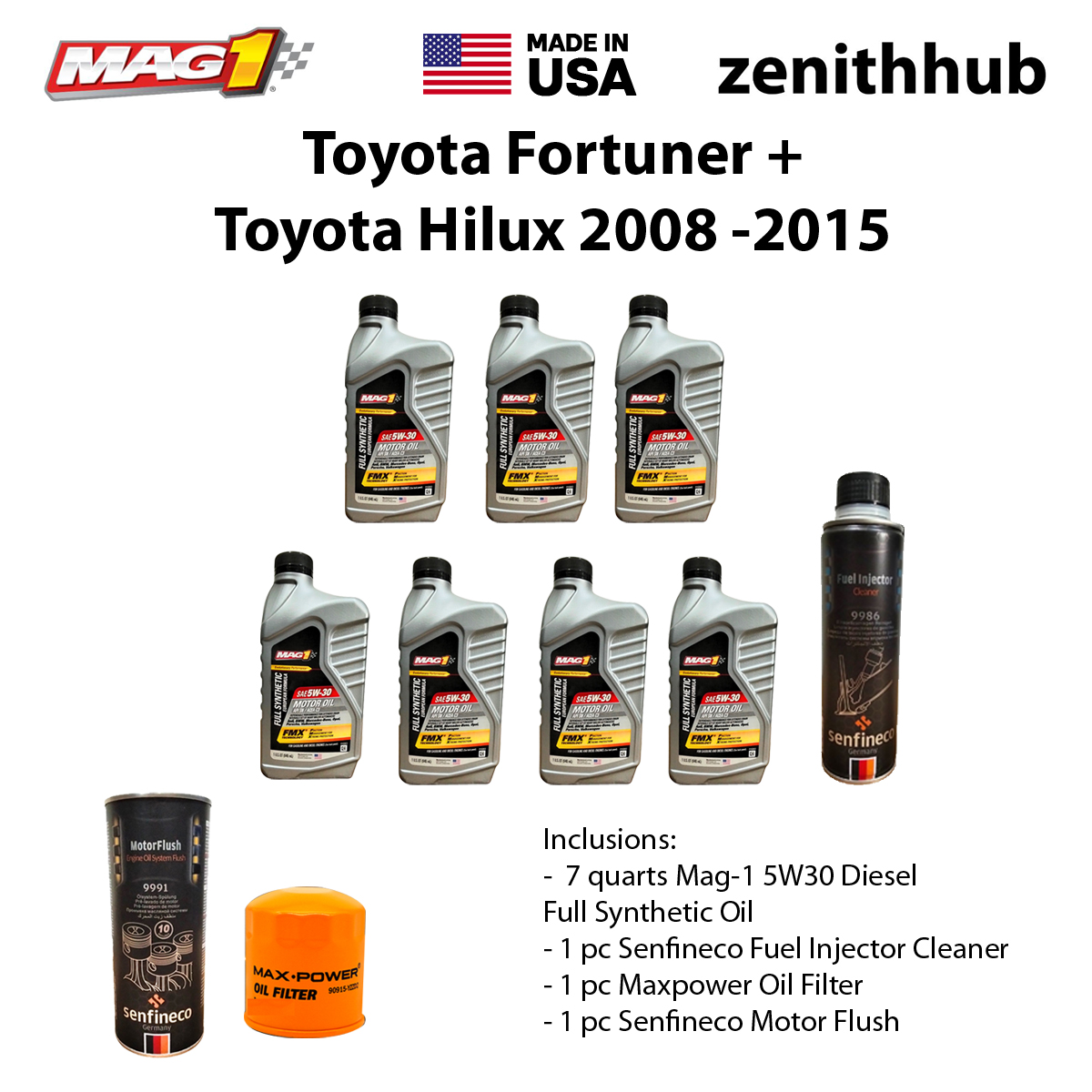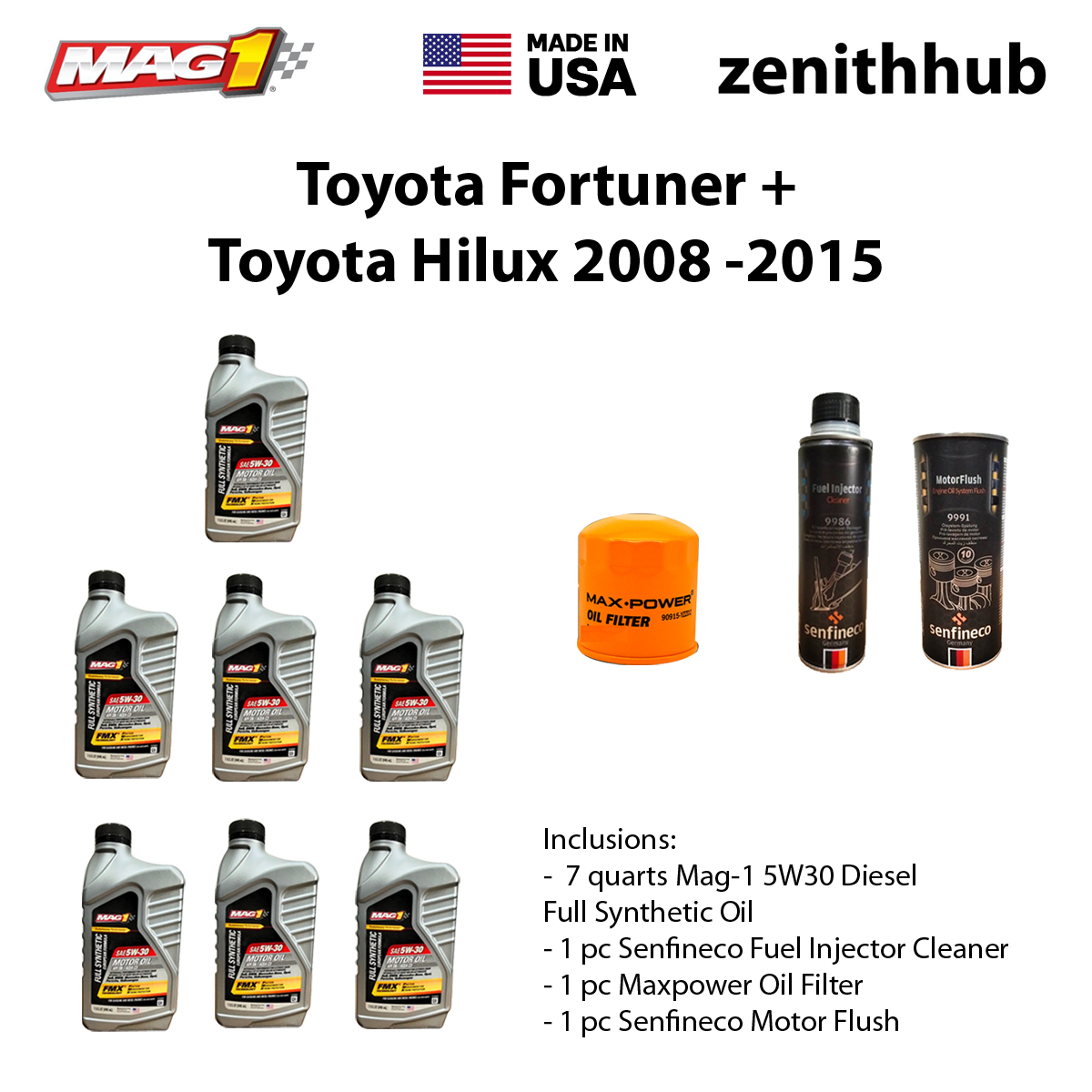 Mag-1 USA 100% Synthetic Toyota Fortuner / Hilux (2008-2015) DIY Change Oil Package