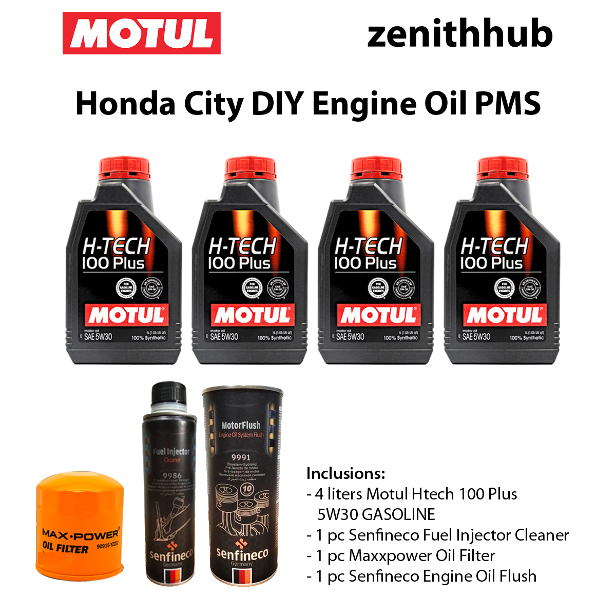 This kit includes 4 liters of Motul H-Tech100 , Maxxpower oil filter, plus Senfineco Engine Oil Flush to help remove deposits before the oil change. It also comes with Senfineco Fuel GASOLINE Injector Cleaner to support better combustion, improved throttle response, and more efficient fuel use.